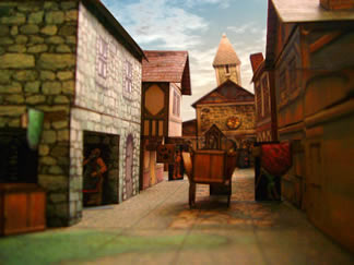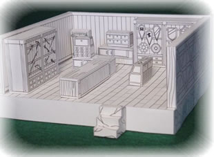 I must recommend you visit the site, not just for the free sample sets but also for the animations of the pieces in action... quite amazing! Upcoming projects include an expanded castle set with siege engines and ruined sections, and a 'Hovels and Homes' interiors set.